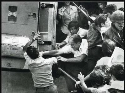 ——“西贡铁拳”指越南战争中,美军撤离时,美国大使馆工作人员一拳将挤上直升机的南越官员打下直升机的事件。这经典的一幕被一位记者拍下,便有了我们熟知的"西贡之拳"这张照片。